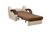 Удобные кожаные подлокотники выполнены в темно-коричневом цвете, а боковины изделия изготовлены из кожи бежевого цвета. Такие цветовые решения делают раскладное кресло универсальным. Съемный чехол практичен и позволяет легко постирать обивку вашей мягкой мебели.
